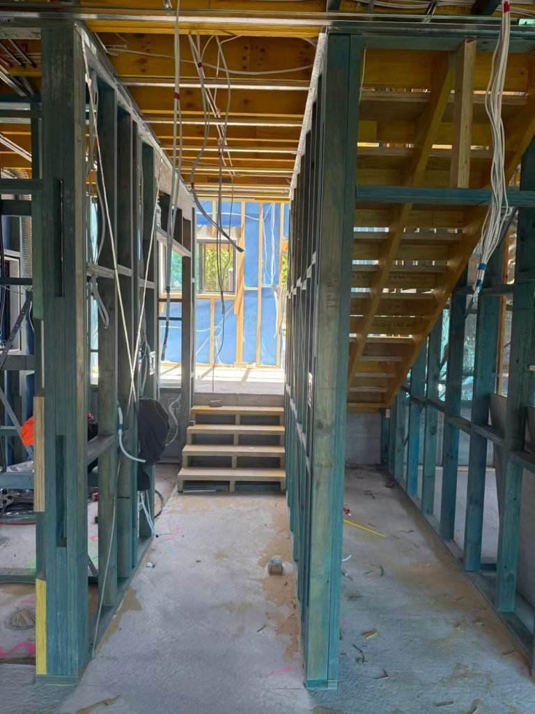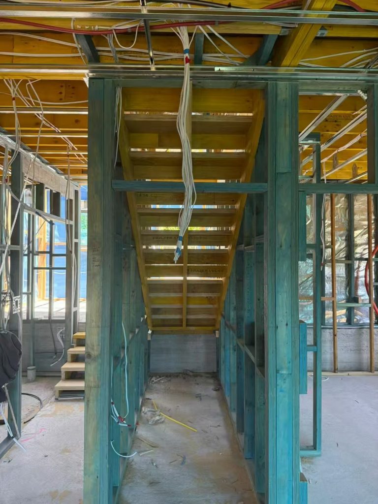 This stage involves installing wiring, conduits, and electrical boxes within walls and ceilings before linings are applied. This sets up the infrastructure for power, lighting, and communication systems prior to final fit-off.