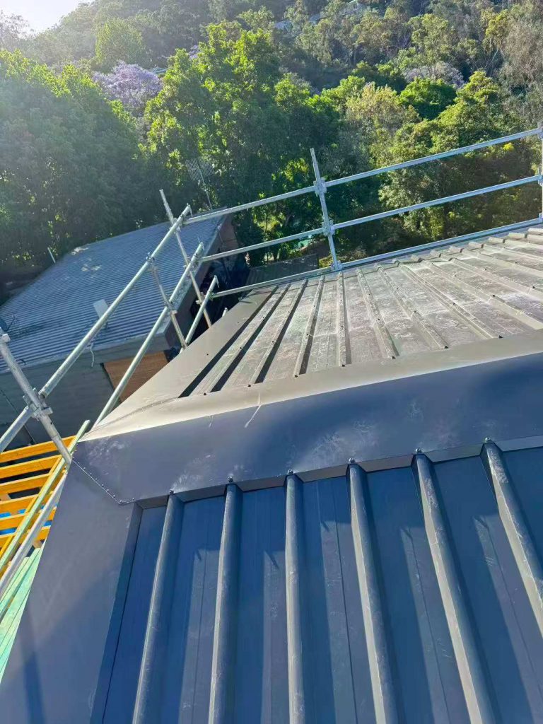 This stage involves installing the roof structure covering, including insulation, sarking, and roof sheeting or tiles, making the building weatherproof, protecting the internal structure and allowing internal works to commence.
